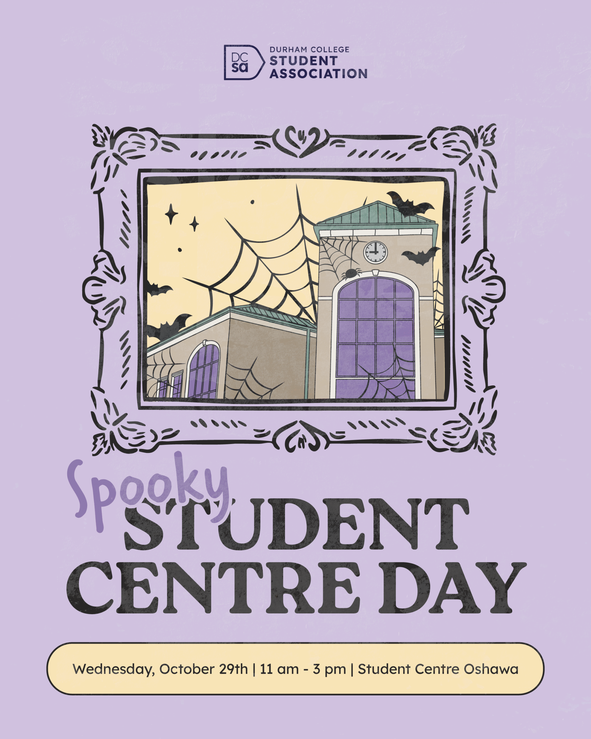 💀 Stop by for treats, games, and giveaways! Celebrate Halloween with your fellow students. 📅 Wednesday, Oct. 29 ⏰ 11 AM – 3 PM 📍 DCSA Student Centre (Oshawa)