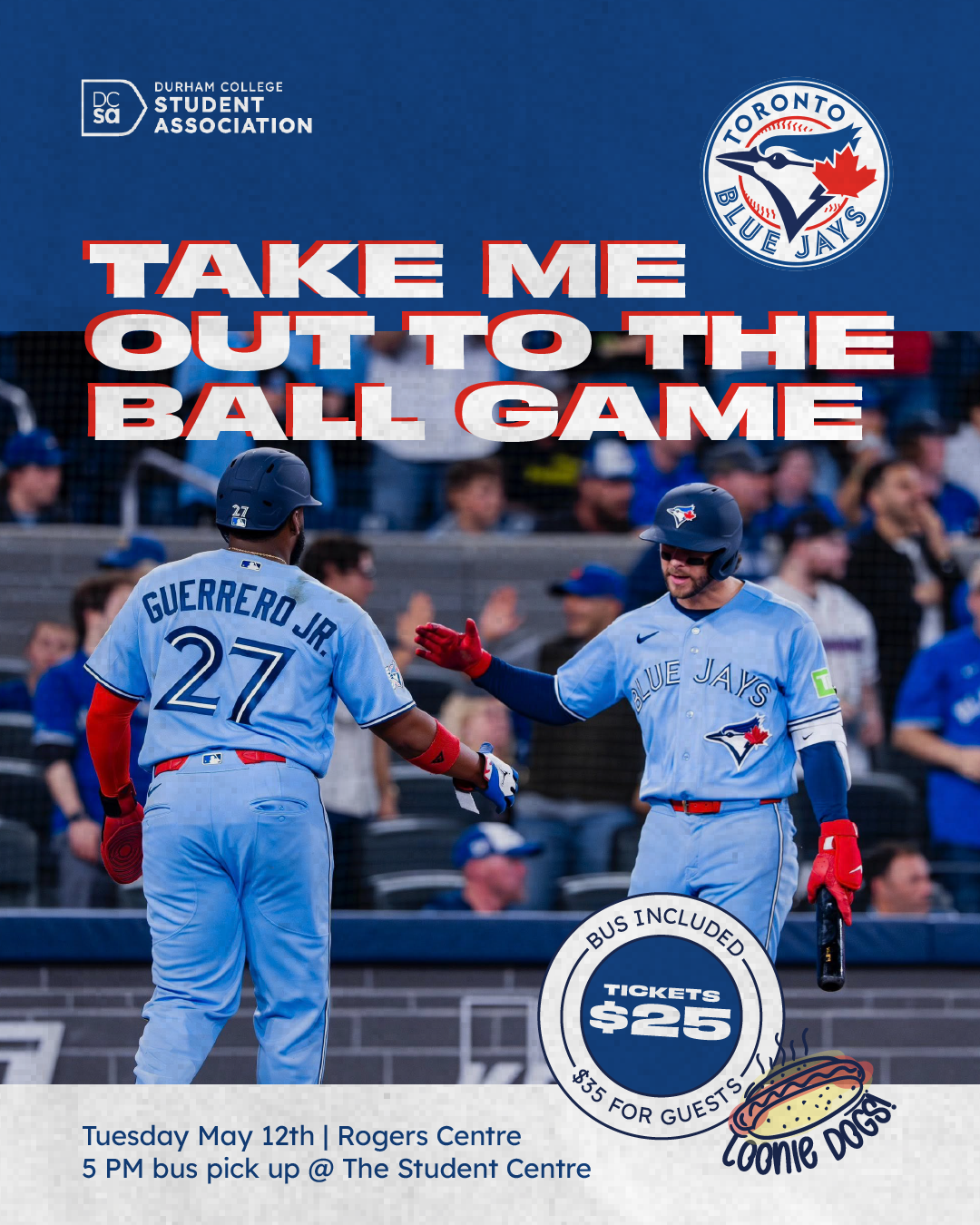 Take me out to the ball game!! ⚾️🌭 Ready for a break? Join DCSA as we head to the Rogers Centre for Loonie Dog Night! Cheer on the Blue Jays and enjoy $1 hot dogs all game long. We’ve got the transportation and tickets covered—just bring your team spirit! 📅 When: Tuesday, May 12th 📍